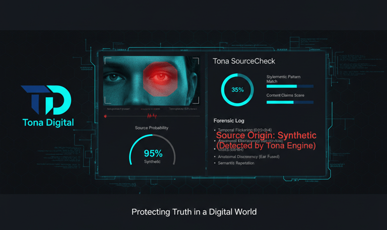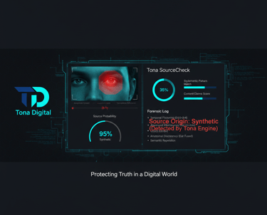 Our proprietary Tona Integrity Scan goes beyond surface-level detection, performing deep stylometric analysis on text, pinpointing temporal flickering and physics violations in video, and auditing pixel-level anomalies in images. Whether it's detecting sophisticated deepfakes, exposing AI-generated articles, or validating genuine human creations, Tona SourceCheck provides clear, evidence-based verdicts. Empower your decisions with undeniable truth – powered by Tona Digital.